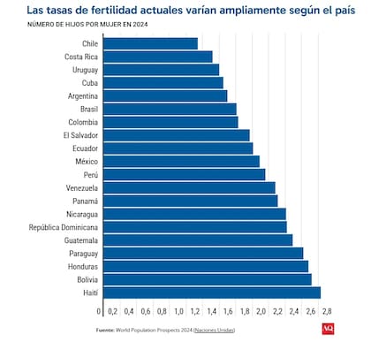Las estadísticas apenas comienzan a captar el impacto. Según datos de la ONUla tasa de fecundidad en América Latina es ahora de 1,8 hijos por mujer: una caída desde los seis de 1950, y por debajo del nivel de reemplazo de 2,1. Si las tendencias actuales se mantienen, para el 2100 las poblaciones nacionales disminuirán en un tercio en Chile y Uruguay, en una cuarta parte en Brasil y en un quinto en la Argentina.